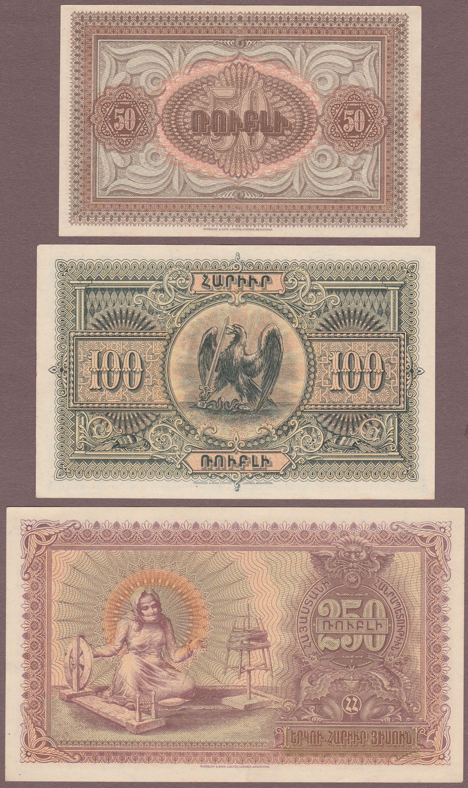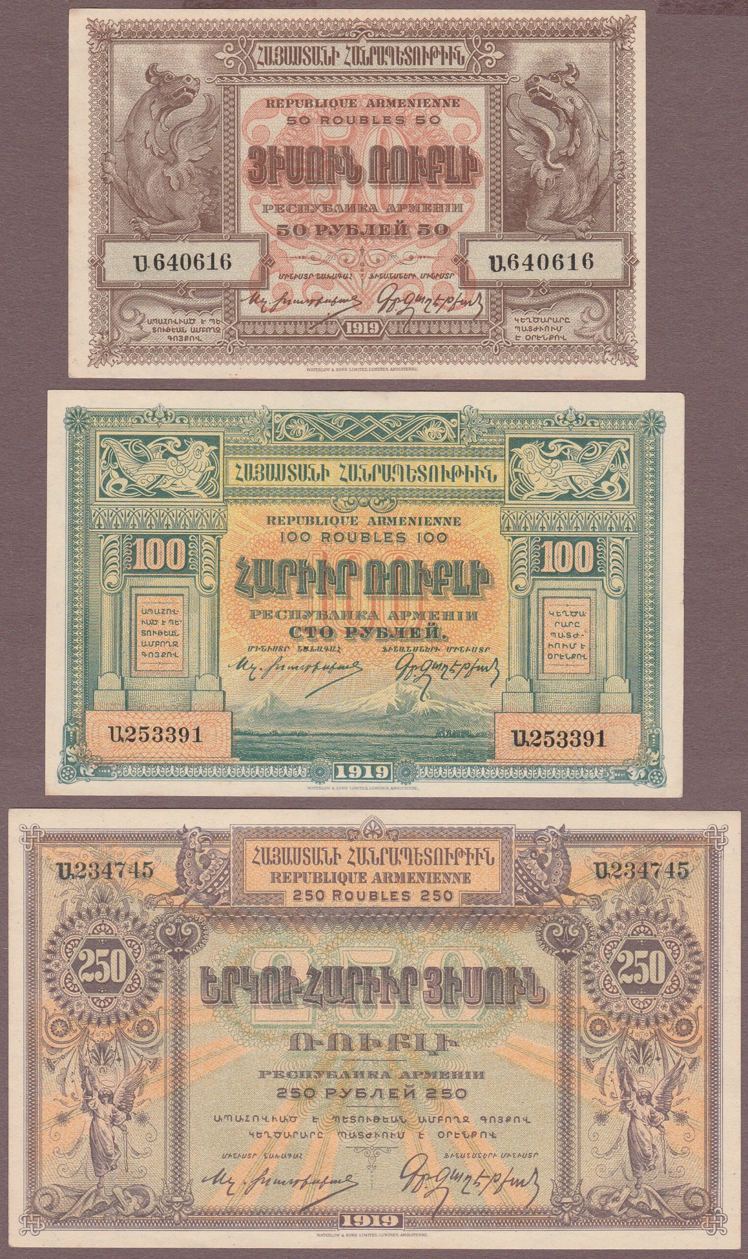 50, 100, and 250 Rubles, 1919, B101a-103a/P30-32, Unc- (lt handling)