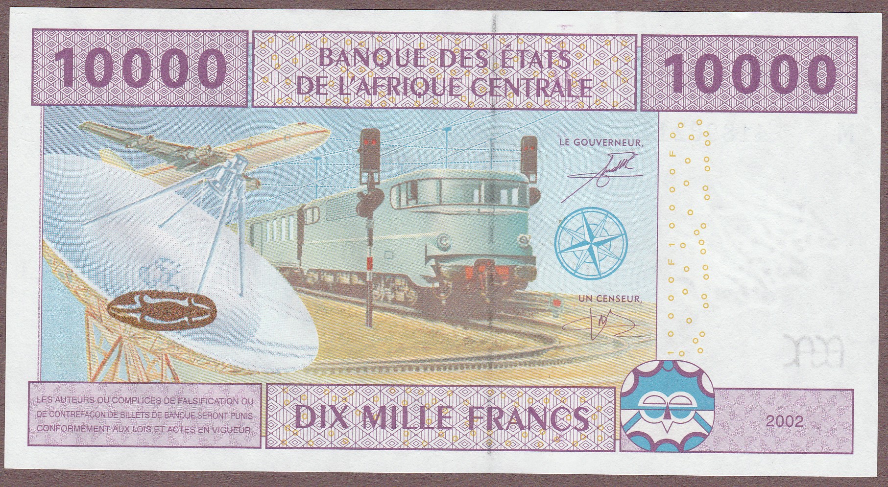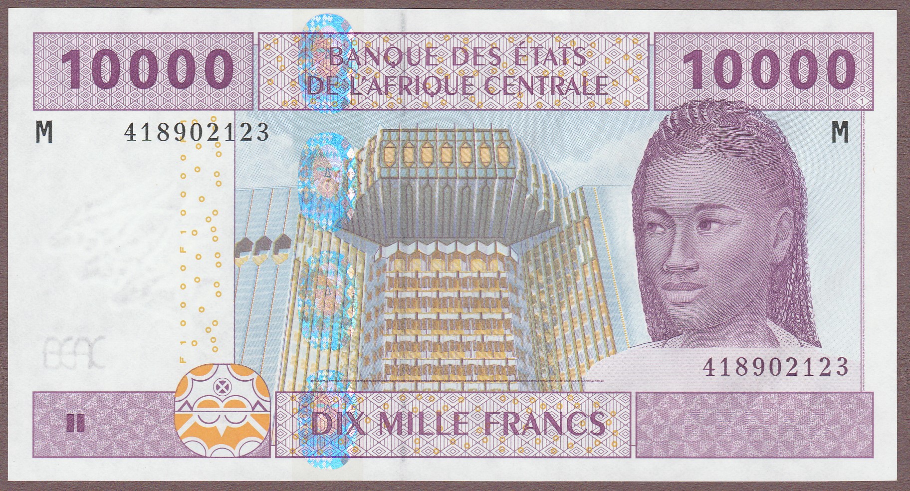 Letter M (Central African Republic), 10000 Francs, Andzembe / Aleka-Rybert signatures (scarce), B110Mb/P310Mb, UNC