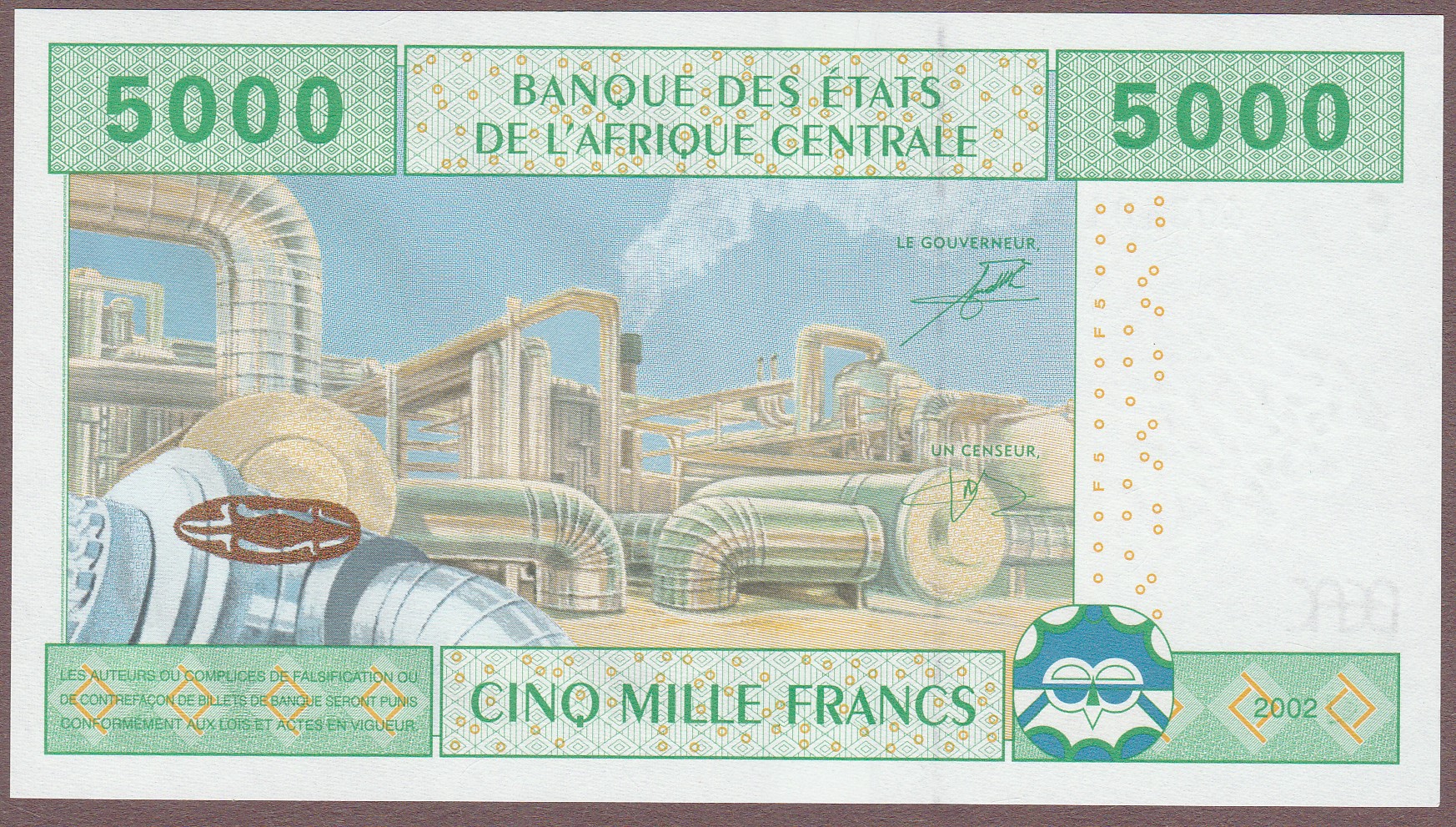Letter C (Chad), 5000 Francs, Andzembe / Aleka-Rybert signatures (scarce signature variety), B109Cb/P609Cb, UNC