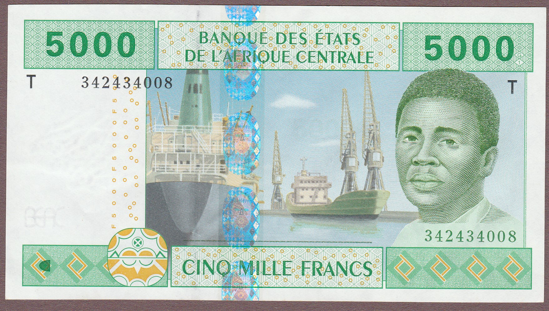 Letter T (Congo), 5000 Francs, Andzembe signature (uncommon), B109Tb/P109Tb, AU-Unc
