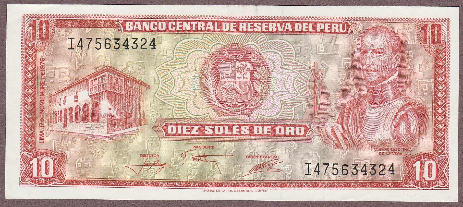10 Soles, 17 NOV 1976, B435i/P112, Unc (light handling)