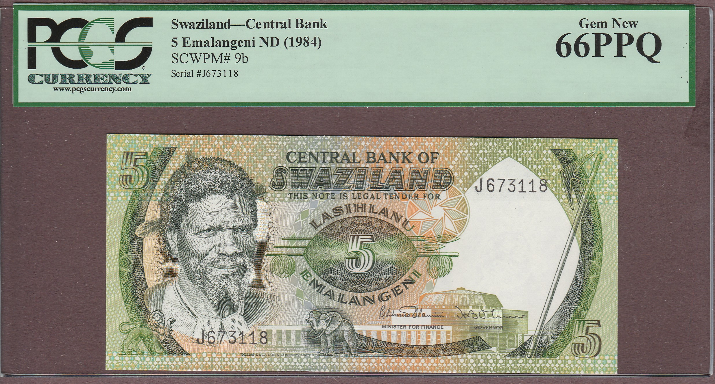 5 Emalangeni, B204b/P9b, UNC PCGS-66 PPQ