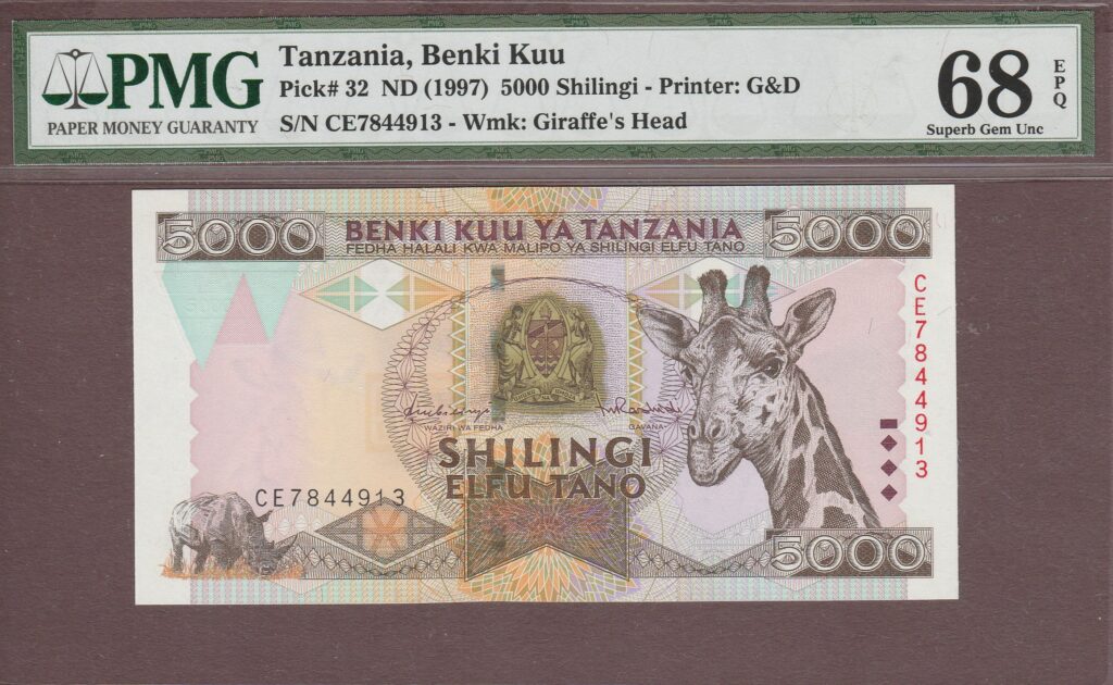 Tanzania B131a/P32 UNC PMG-68 EPQ