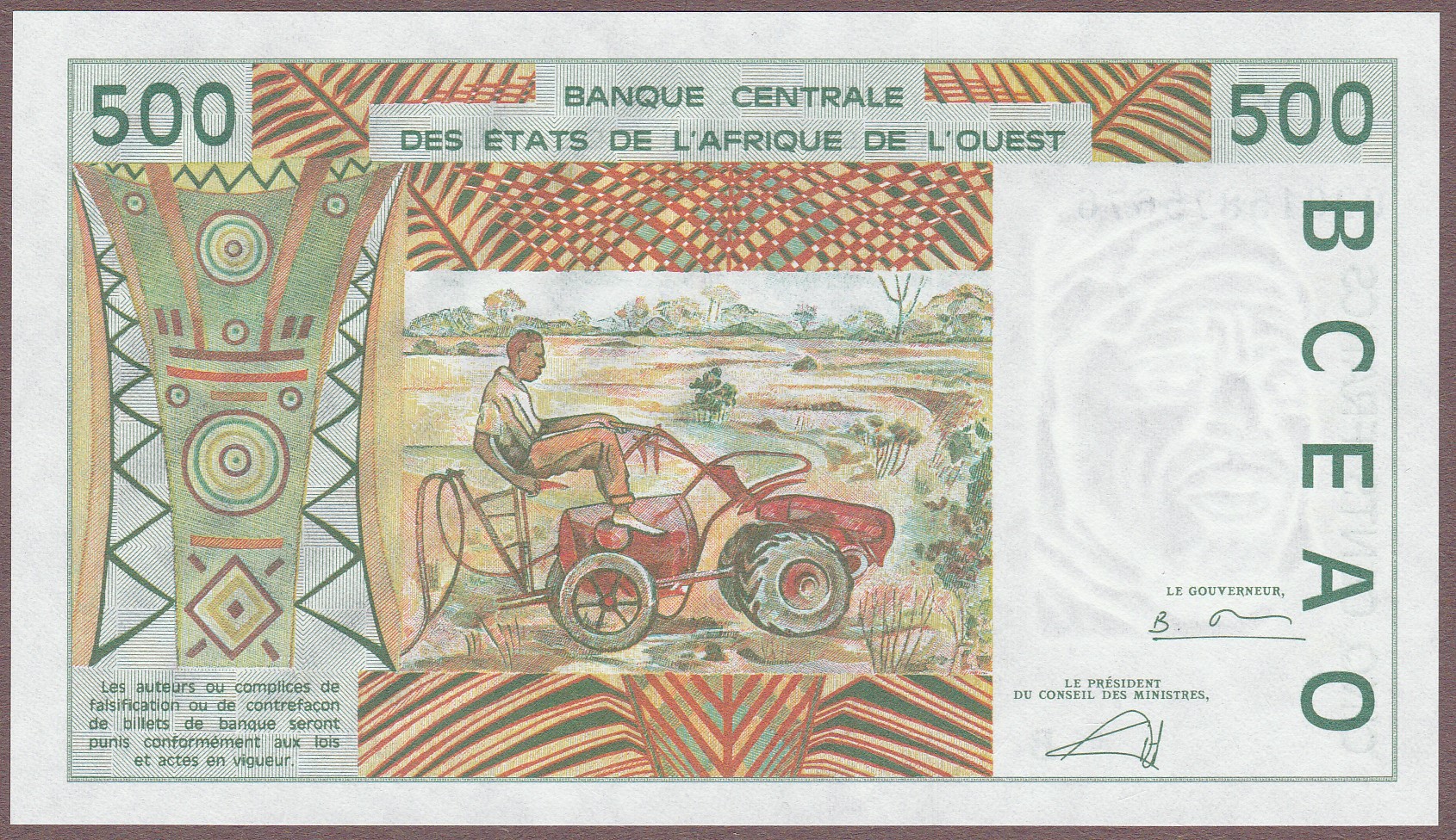 500 Francs, Benin (letter B), 2002, B115Bm/P210Bn, UNC