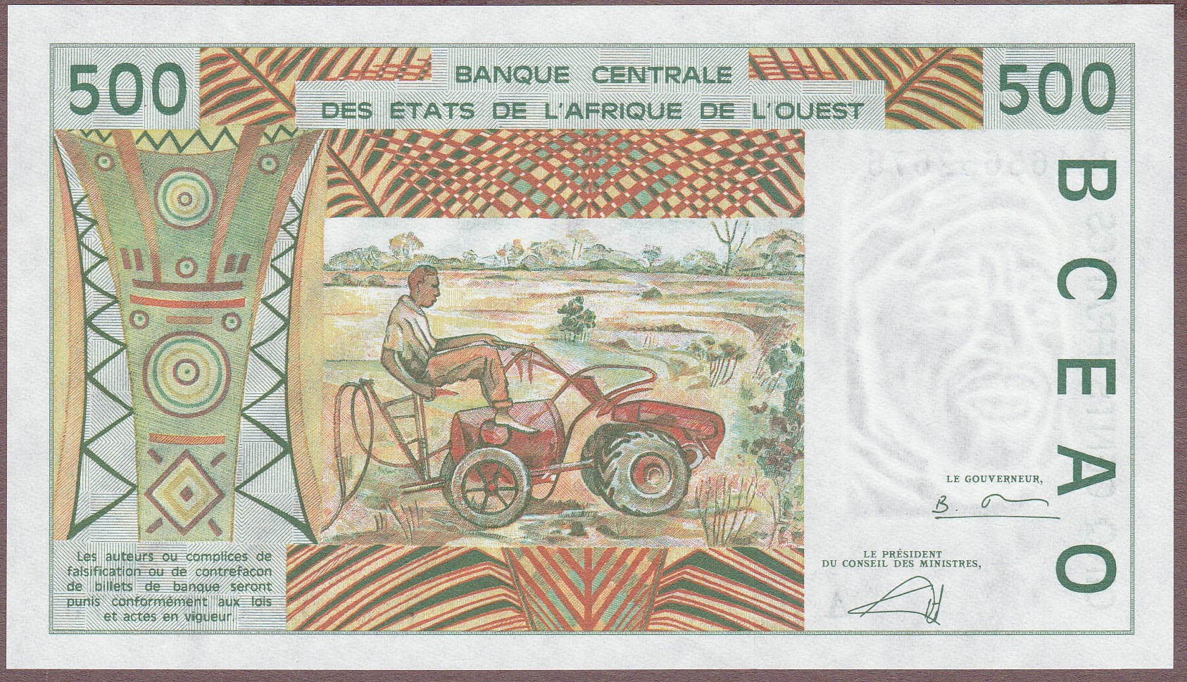 500 Francs, Ivory Coast (letter A), 2002, B115Al/P110Am, UNC