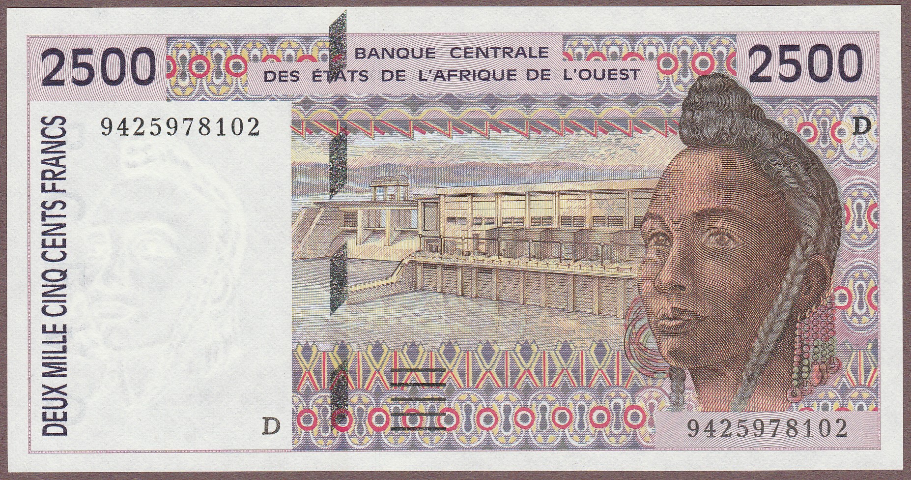 2500 Francs, Mali (letter D), 1994, signature 27, B117Dc/P412Dc, UNC