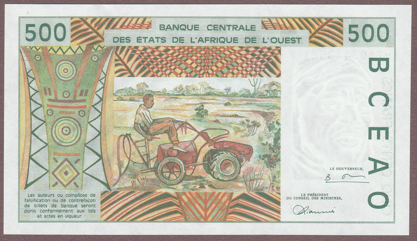 500 Francs, Niger (letter H), 1997, B115Hg/P610Hh, AU-Unc
