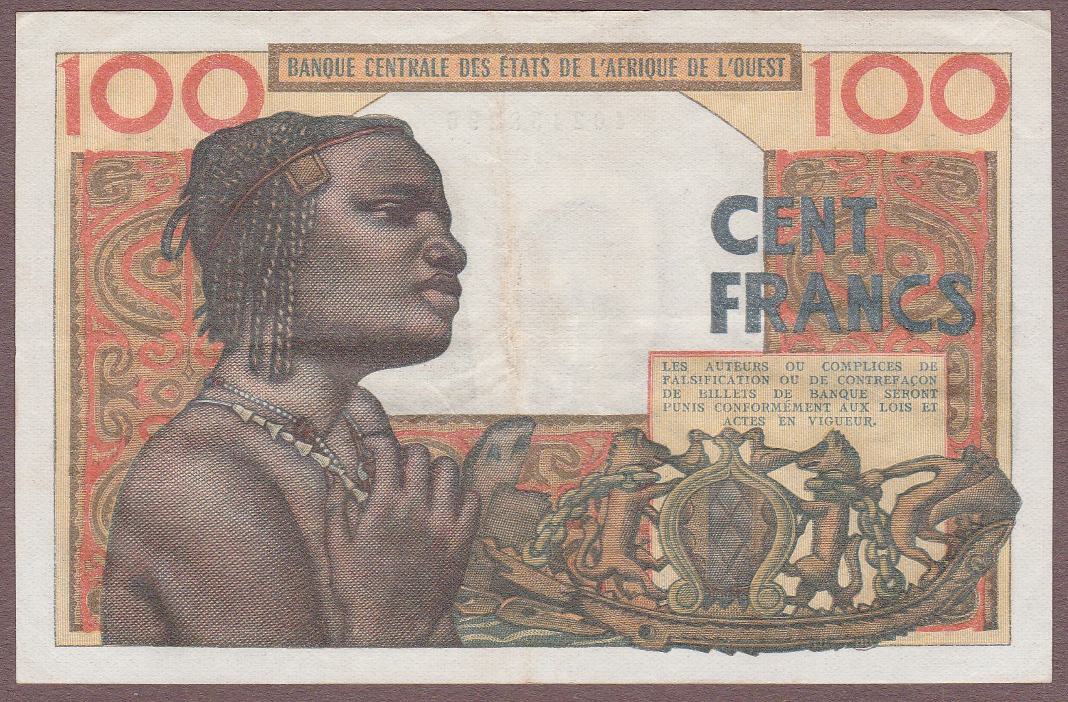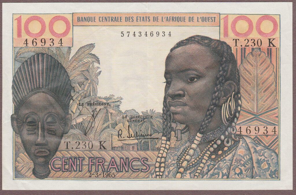 100 Francs, Togo (letter T), 20-3-1961, signature 2, engraved, B106Tb/P801Tb, aXF