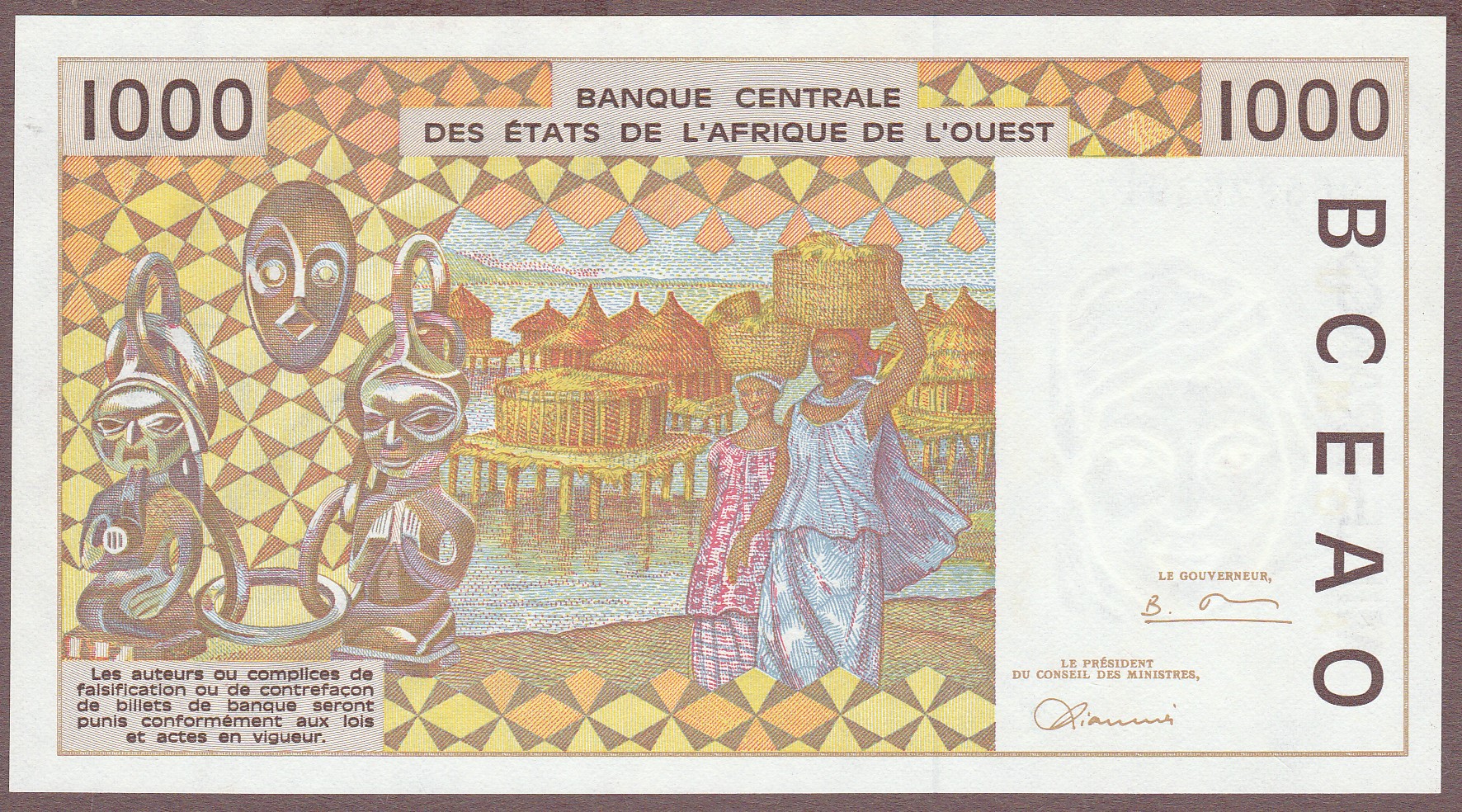 1000 Francs, Togo (letter T), 1996, B116Tf/P811Tf, UNC